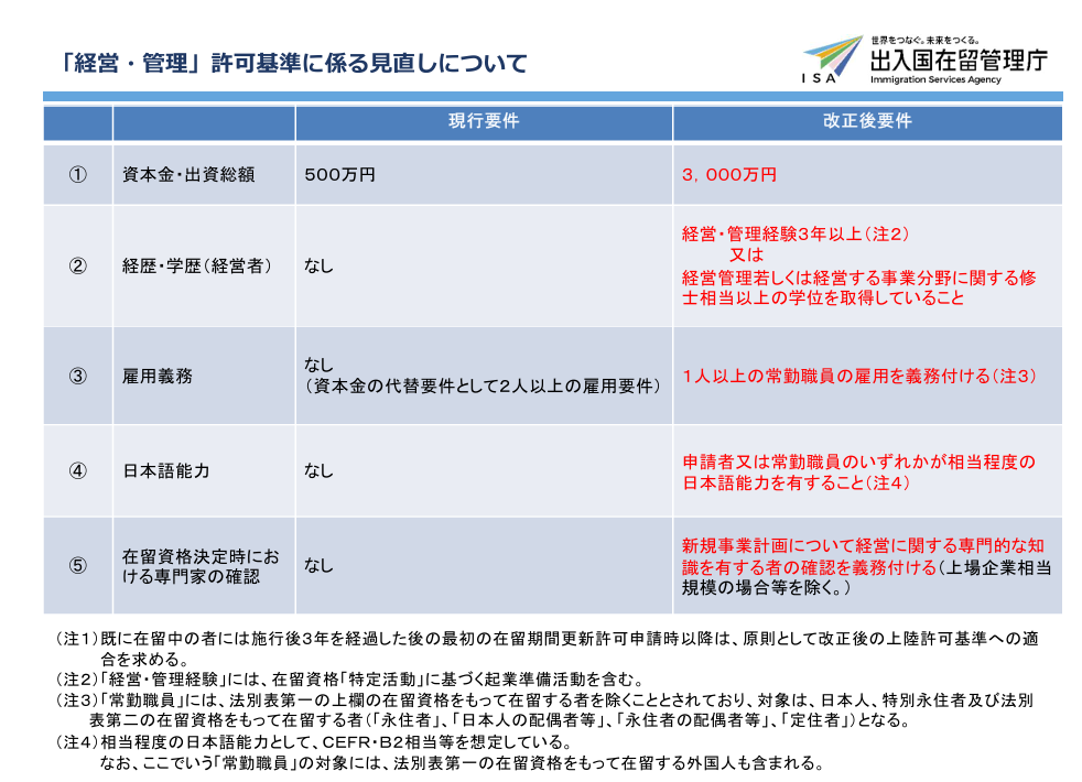 株式会社の場合、会社の支配権が株主に所属する事と、株主から選任された代表取締役や社長が持つ経営権に分けて考える必要があります。このうち「経営・管理」の在留資格は属人的なものであり、社長ではなく株主が誰かという点に関係します。仮に、日本人の株主が51%以上の株の持ち分を有する会社があるとするならば、「経営・管理」在留資格とは無関係な日本人オーナーの企業となります。従って、3,000万円の資本金問題とは無関係となります。